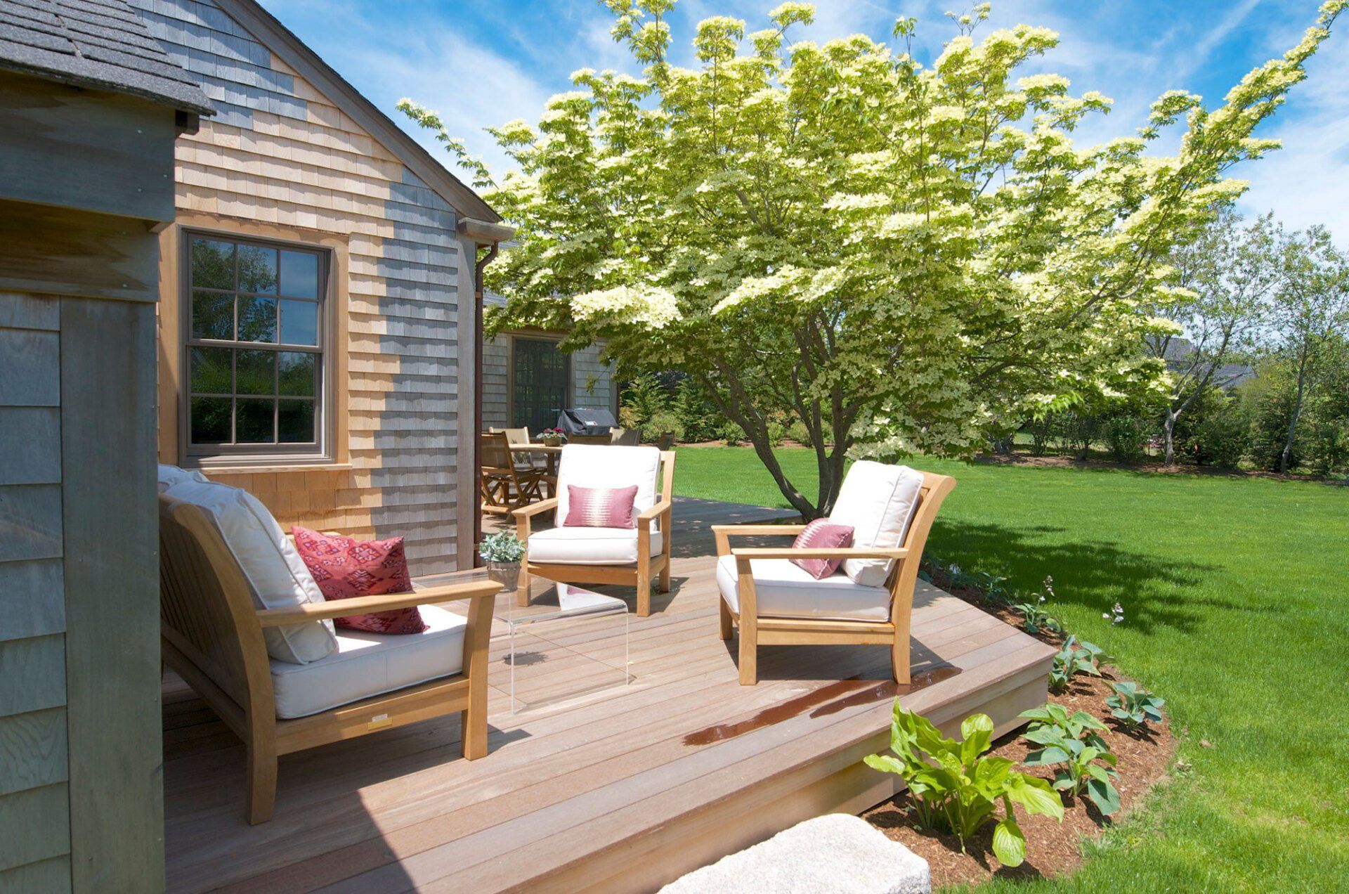 Not far from the surf beaches and the summertime favorite après beach pit stop Cisco Brewery, this ranch house was renovated with the playful-minded family and easy living at the heart of its design. The renovation added a bathroom, allowing all four bedrooms to be en-suite, as well as a den with its subtle privacy from the newly expanded kitchen and open living plan. The goal for open living included embracing the backyard, new deck, and landscape design.